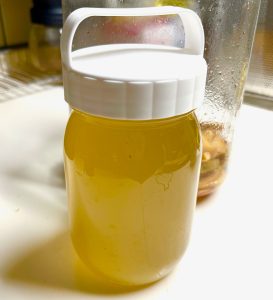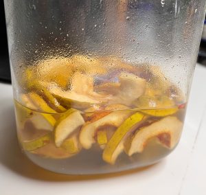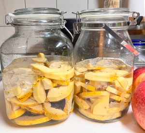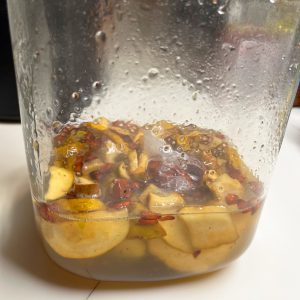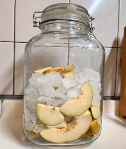 花梨輪切りと氷砂糖を同量でカビ防止に毎日瓶を振る翌日