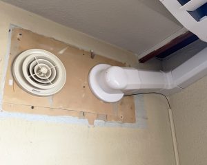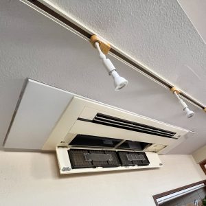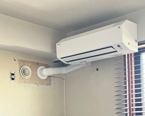 welcome 壁付エアコン。三菱ロスナイの付いていた壁が痛々しい…