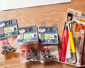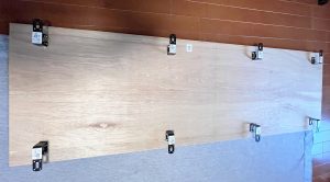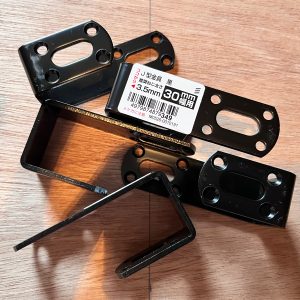 DCMで4mm厚のベニヤをカットしてもらってJ型金具を取り付ける。カインズで買っておいたオフセットドライバーじゃないと取り付けられない。ネジ買うときに気がついて良かった…
