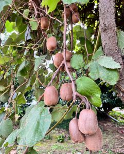 キウイはまだ固いけど大きな実を少し収穫。熟成してから食べることにした