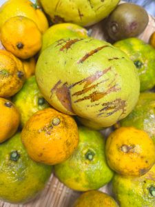 温州みかんは去年と同様、枯れながら萎んでいる実を全て手入れし、少し色ずんでいるものを収穫してきた