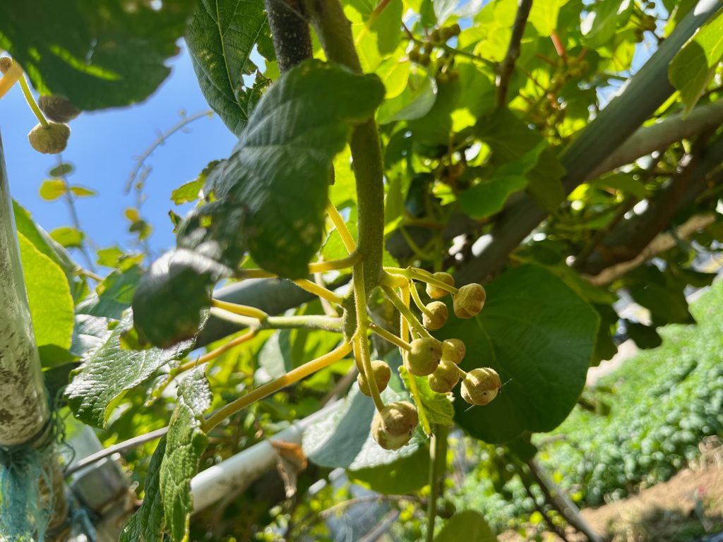 キウイの様子。今年も摘果の予定。枇杷の摘果は少ししたけど高いところに実りすぎて殆ど断念。
